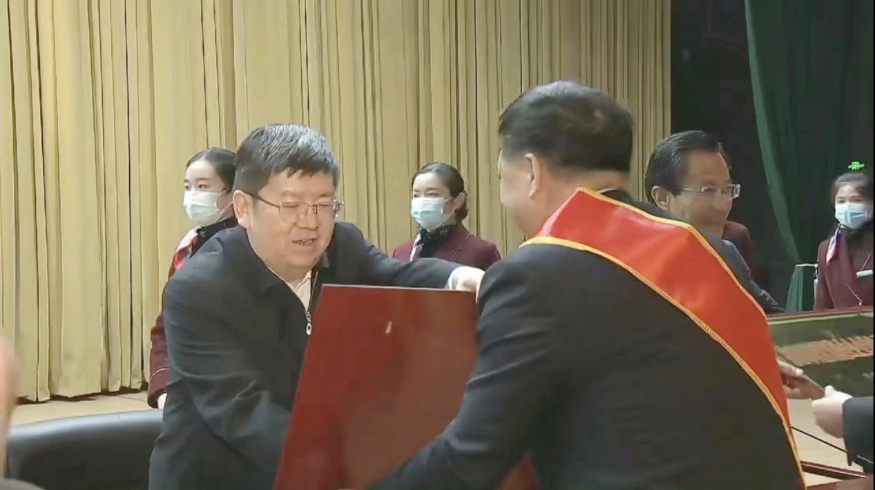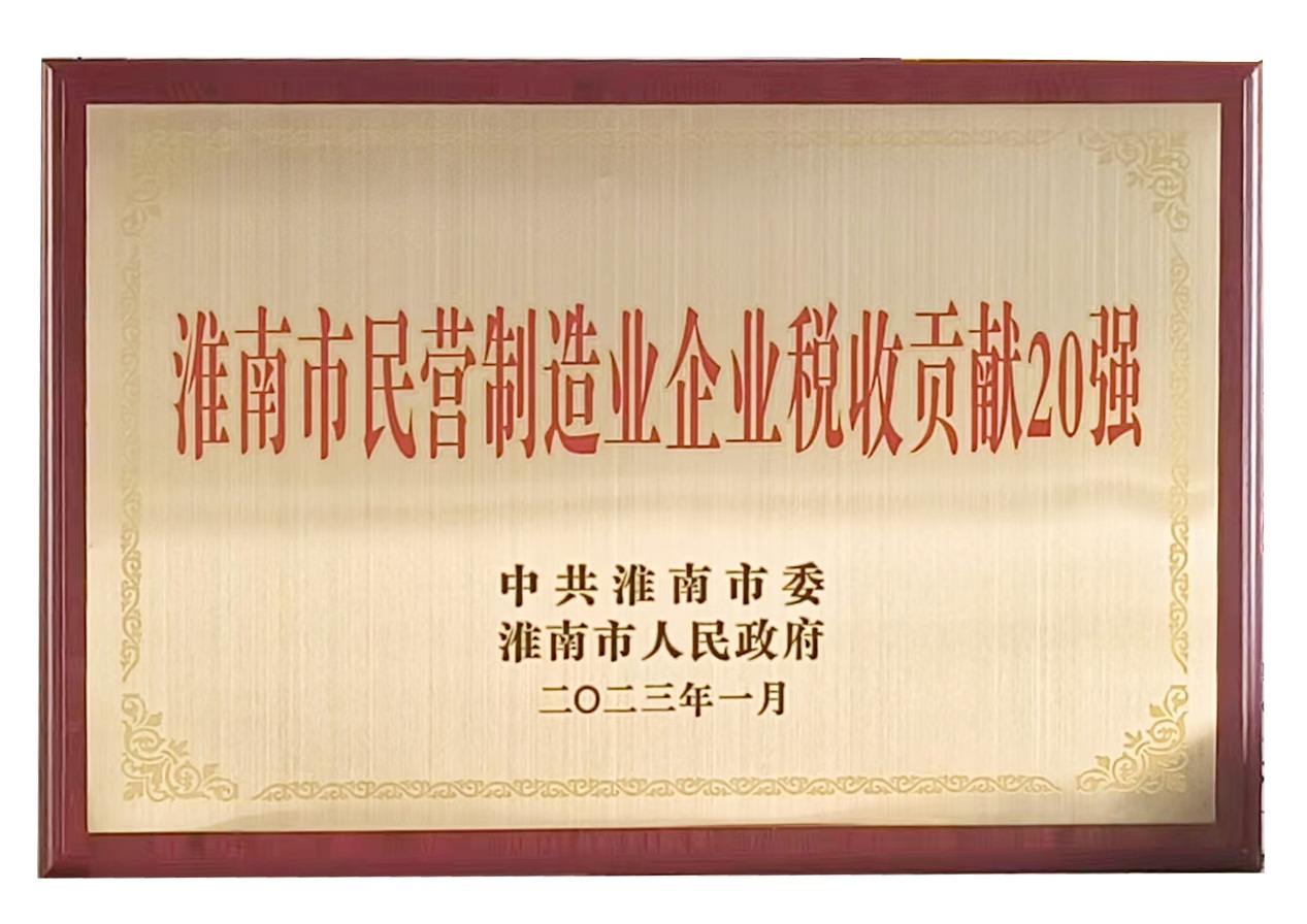 2023年1月30日上午,淮南市“一改两为”推进会暨“双招双引”推动高质量发展大会在市政务中心召开。会上对全市“淮南市民营制造业企业税收贡献20强”等企业和先进集体、先进个人进行了表彰。安徽德邦公司以年贡献税收1.51亿元名列20强之首,市委书记任泽锋亲自为企业颁发奖牌并表示祝贺。