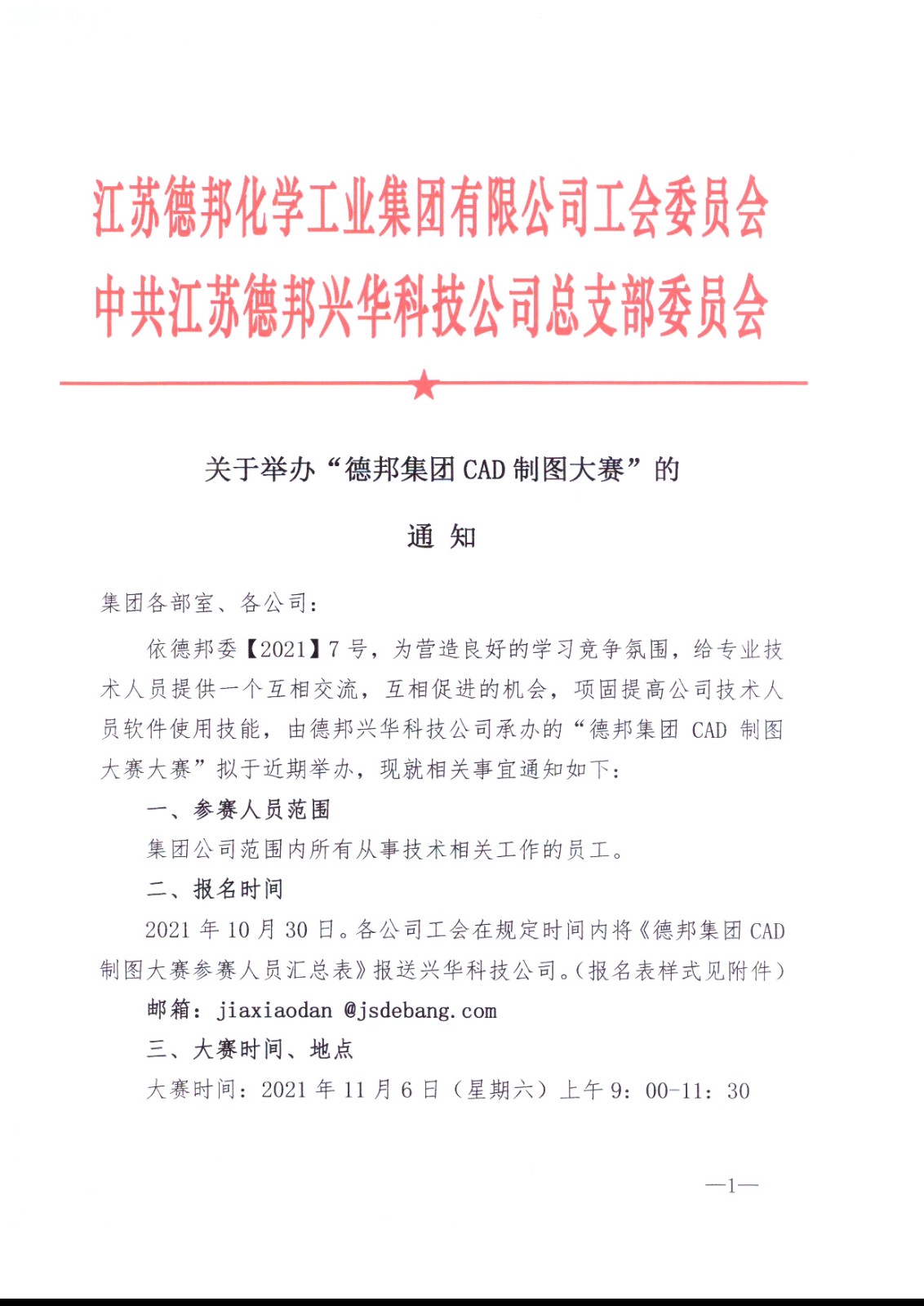 德邦兴华科技公司关于举办德邦集团CAD制图大赛的通知