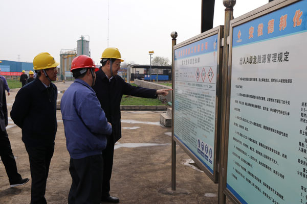 3月23日上午,淮南市委常委、副市长杨东坡一行莅临安徽德邦公司检查安全生产工作。市经济技术开发区管委会主任张海涛,市应急管理局局长李宝云等省市安全专家一起陪同检查。杨市长一行在公司领导的陪同下分别来到液氨贮槽和甲醇罐区实地查看安全生产运行情况,要求企业认真汲取江苏省盐城市响水县天嘉宜化工有限公司“3•21”爆炸事故教训,全面排查治理安全隐患,严格落实安全生产责任制,开展全员安全警示教育,扎实做好当前化工和危险化学品安全生产工作,严防各类事故的发生。
